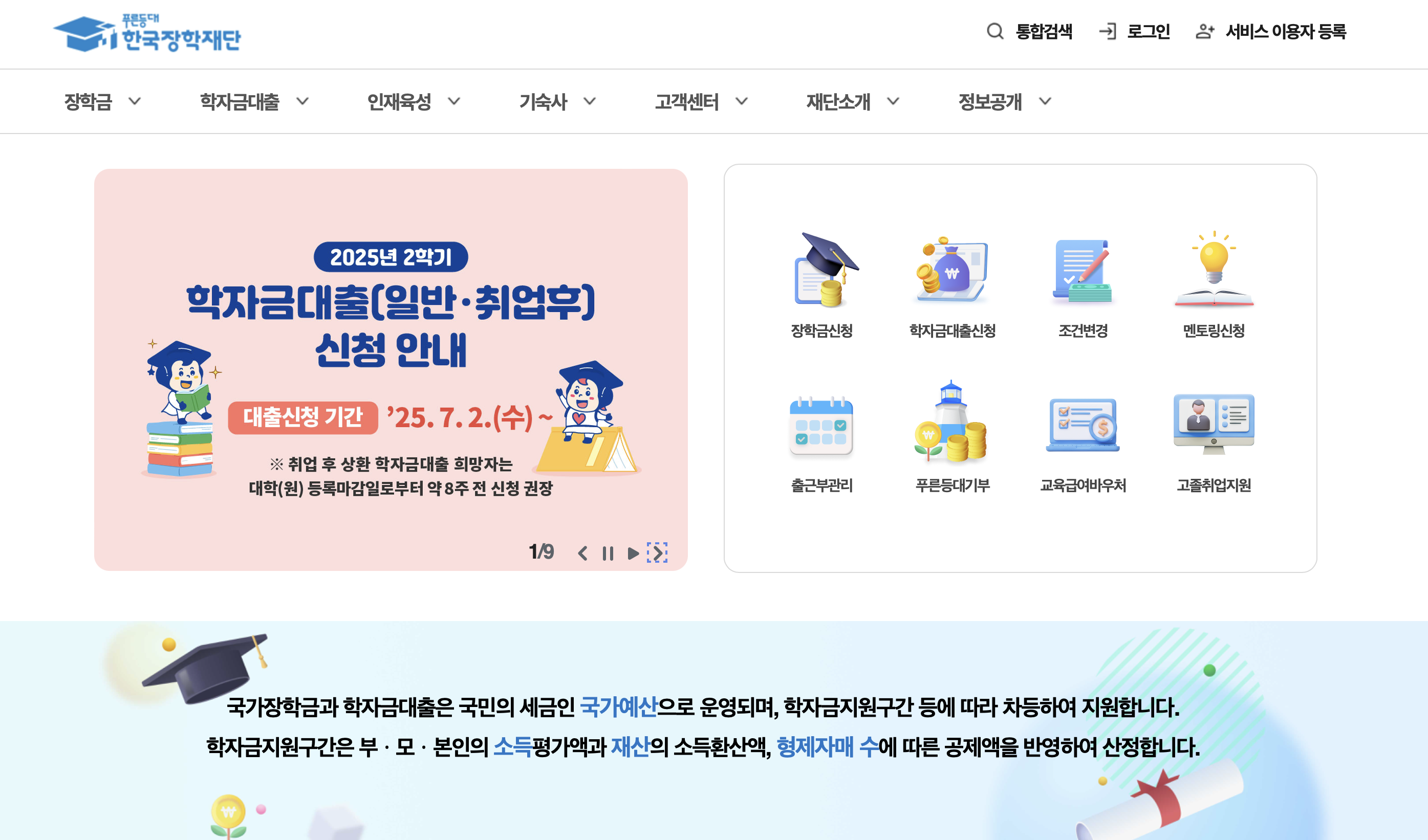 한국장학재단 홈페이지 주요 기능