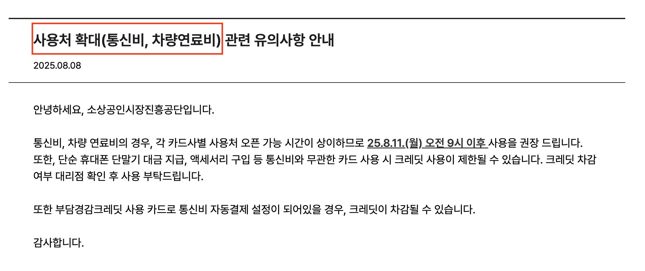 부담경감 크레딧은 소상공인이 필수적으로 지출해야 하는 공과금과 사회보장료에 직접 사용할 수 있도록 설계된 실효성 높은 정책입니다. 단순한 보조금 지급이 아닌, 생활에 밀접한 분야에 자동으로 적용되어 체감도가 높은 제도라는 점에서 높은 평가를 받고 있습니다.