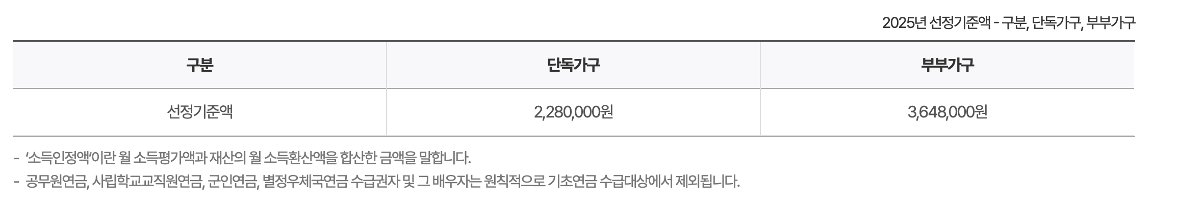 기초노령연금 소득인정액 기준 (2025년 적용)✅