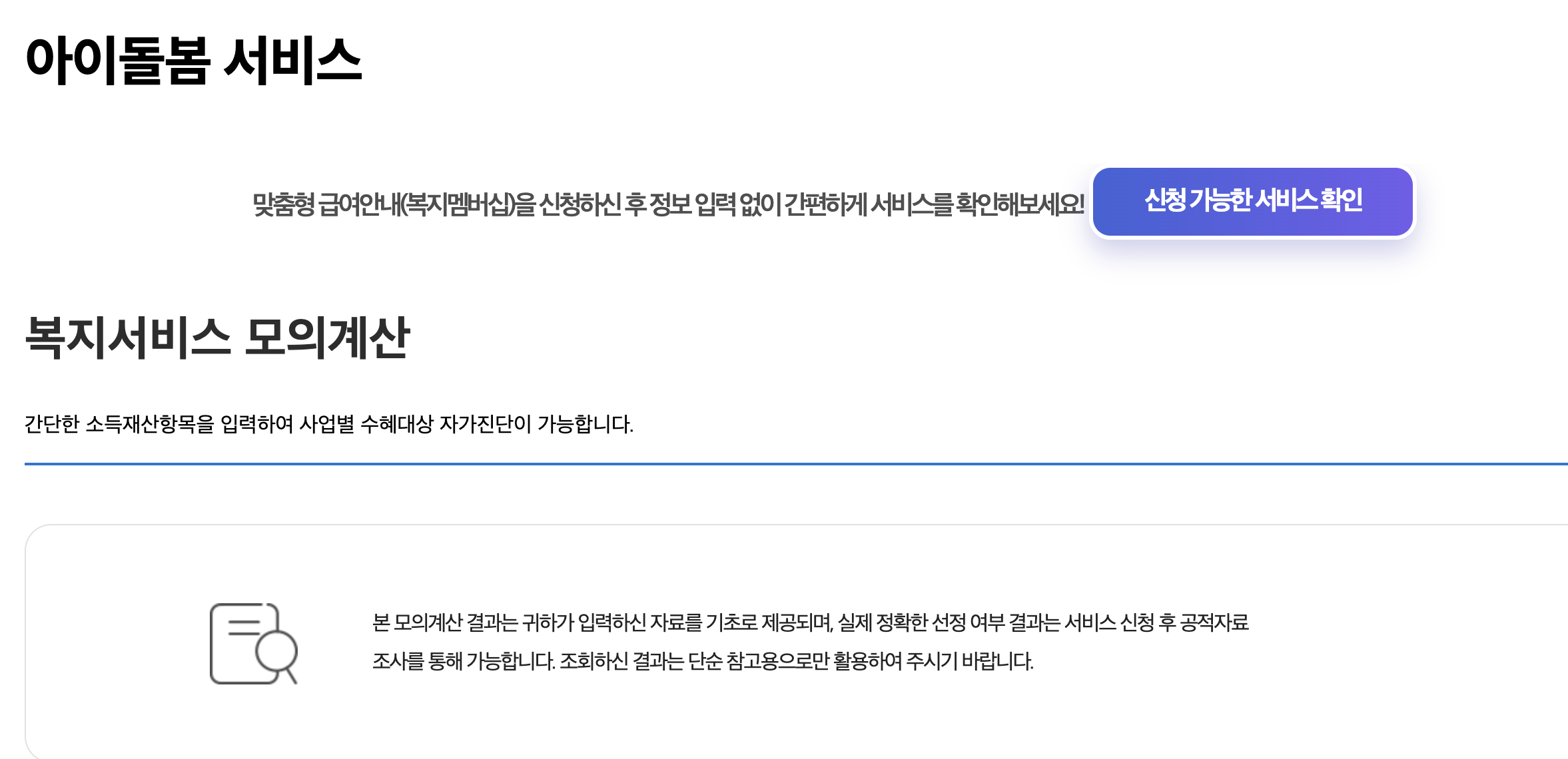 홈페이지를 통해 아이돌봄 서비스 온라인 신청, 서비스 내용 및 요금 안내, 돌보미 정보 제공, 이용내역 조회 및 영수증 출력까지 가능합니다.